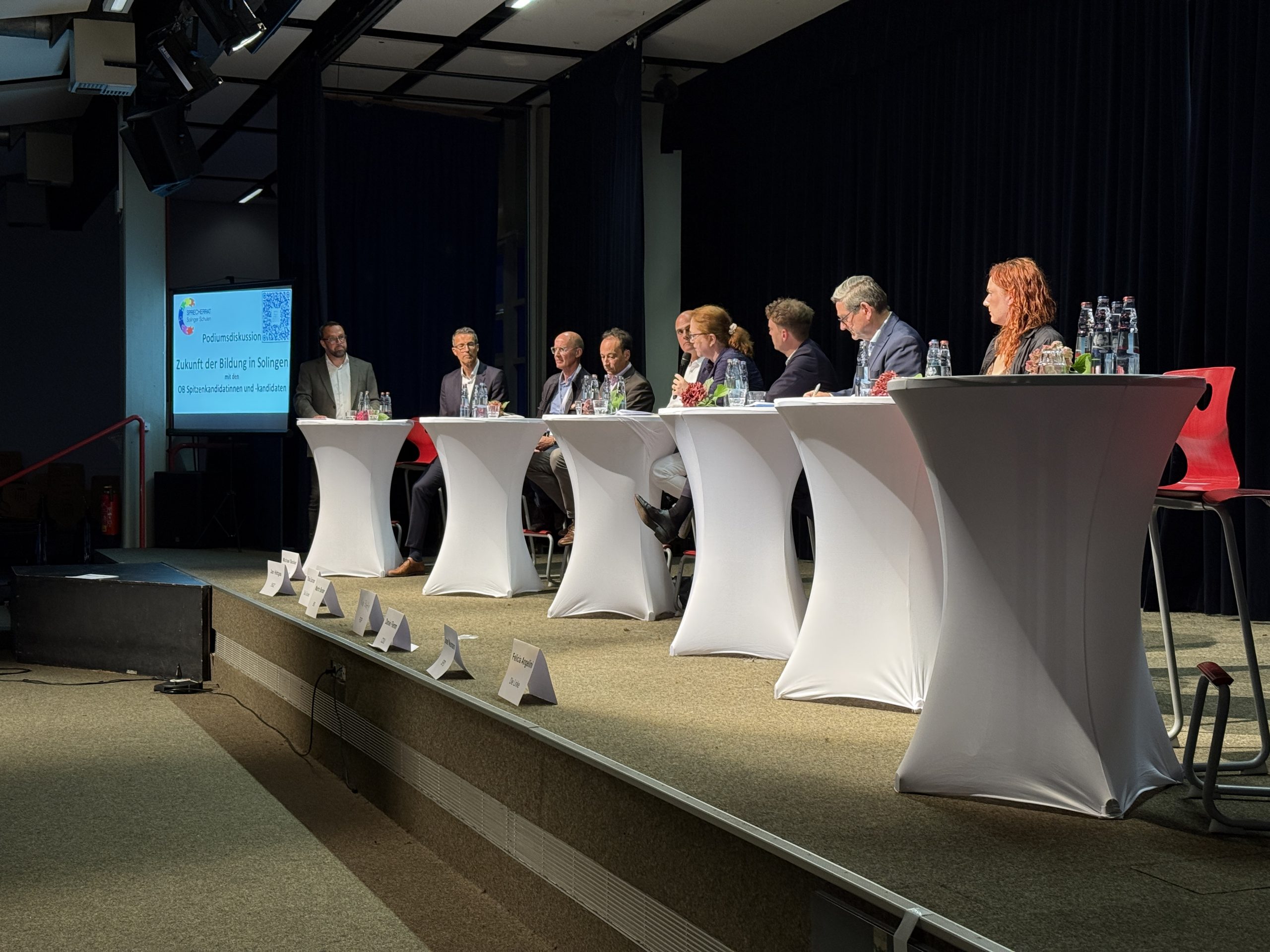 Im Schulzentrum Vogelsang fand kürzlich eine Podiumsdiskussion mit den Oberbürgermeister-Spitzenkandidaten Solingens statt. Die Veranstaltung wurde vom Sprecherrat Solinger Schulen organisiert und stand unter dem Motto „Zukunft der Bildung in Solingen“.